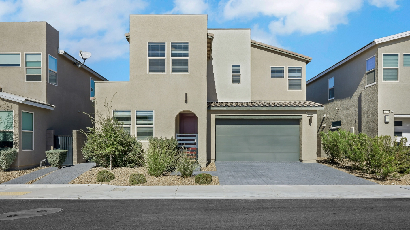 Experience modern Inspirada living at 2641 Via Monet in Henderson. Built in 2019, this stylish 2-story home blends bright, open-concept spaces with designer finishes: upgraded cabinetry, quartz countertops with a large island, stainless steel appliances, and a walk-in pantry—all flowing into the dining area and great room for effortless entertaining.