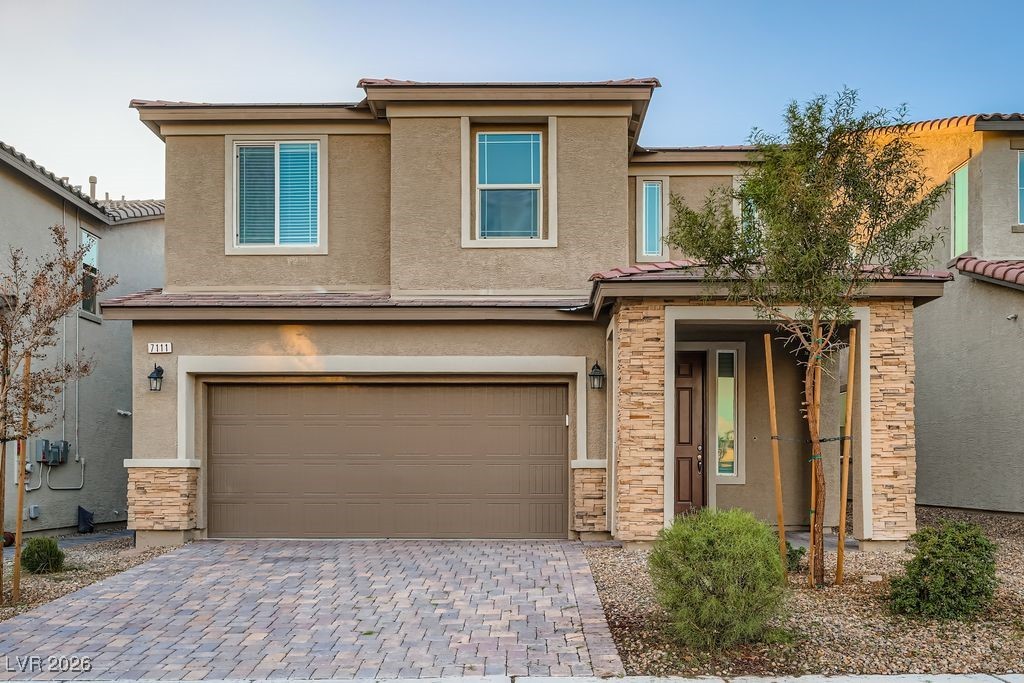 DONE RIGHT. MOVE-IN READY. LIKE-NEW. This two-story home delivers modern design with the added confidence of completed upgrades you can see and feel. The main level features upgraded tile flooring, two-tone paint, enhanced trim, and a versatile den, while the kitchen is finished with quartz countertops, tile backsplash, premier maple cabinetry, a stainless-steel sink, and a matte black faucet—polished, functional, and thoughtfully designed. Upstairs, a spacious loft anchors three bedrooms with upgraded carpet throughout, complemented by tile-surround baths, Mission-style stair rails, and extra windows that bring in abundant natural light. Outside, the expansive backyard with a private patio offers flexibility and space to personalize—ideal for everyday use or future enhancements. Located within Aliante, this home is close to parks, walking paths, and local conveniences. Like-new condition, intentional upgrades, and true move-in readiness—this is modern living without the guesswork!